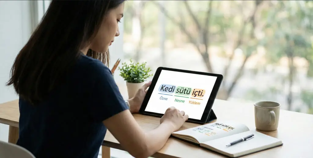 Bu bölümde, Türkçenin dilbilgisi kurallarını adım adım ve örnekler üzerinden öğrenirsin. Cümlelerin nasıl kurulduğunu, kelimelerin cümle içindeki görevlerini ve dilbilgisi yapılarını gerçek kullanım bağlamı içinde keşfedersin. Kurallar sadece anlatılmaz; basit ve anlaşılır örneklerle görür, uygular ve pekiştirirsin.